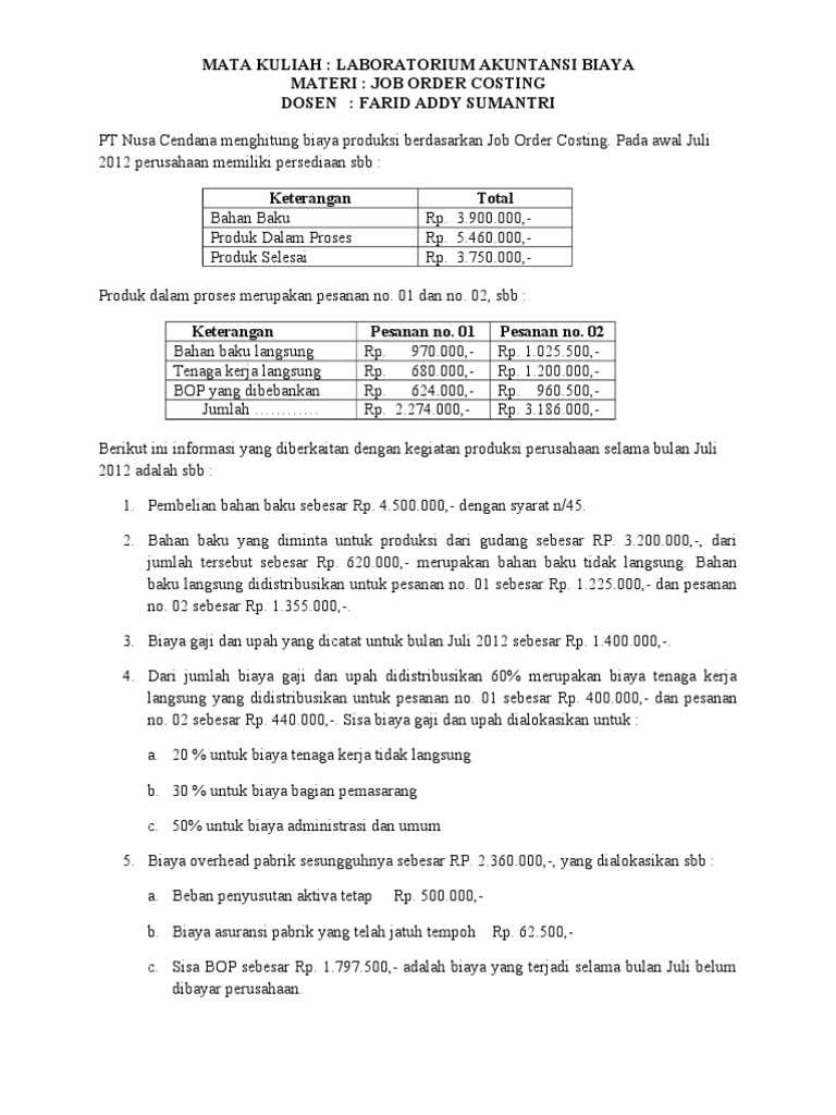 Soal dan jawaban uts akuntansi biaya. Contoh soal biaya produksi beserta jawabannya. Biaya tenaga kerja 2 jam @rp. Contoh soal dan jawaban akuntansi biaya bahan baku. Soal jawab sblm uts 1 from studylibid.com