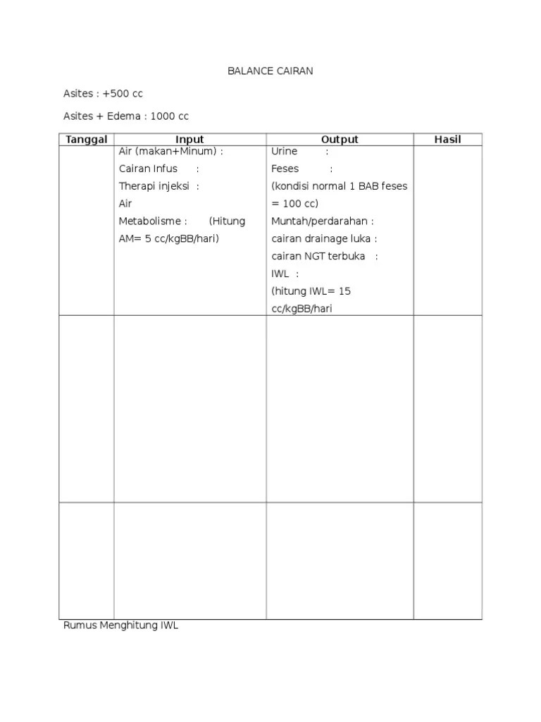 Layanan gratis perhitungan bahan bangunan. cairan keluar *rumus iwl iwl = (15 x bb ) 24 jam cth: Sgp kumat baru diambil dr. Input cairan antara lain air (makan dan minum), cairan infus, injeksi, air metabolisme (hitung am 5x berat badan). cairan dapat mengancam keselamatan pasien dan kualitas perawatan.